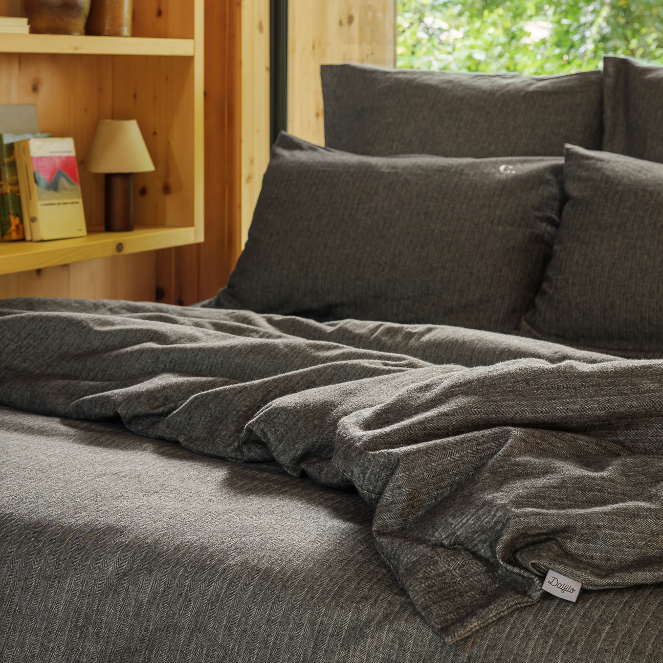 Die Dalfilo-Baumwollflanell verbindet die atmungsaktiven Eigenschaften von Baumwolle mit außergewöhnlicher Weichheit, die durch den Aufrau-Prozess entsteht. Das Ergebnis ist eine superweiche, samtige Textur, die Wärme speichert und in den kältesten Monaten für ein angenehmes Schlafklima sorgt. Gewebt mit der Wärme traditioneller Handwerkskunst – ein gemütlicher Rückzugsort für kalte Wintertage.