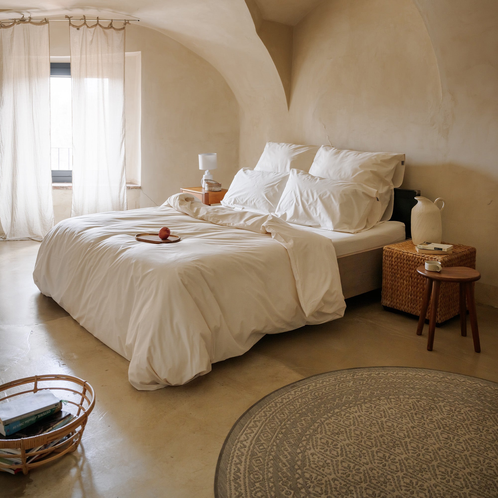 Die Dalfilo-Baumwollflanell verbindet die atmungsaktiven Eigenschaften von Baumwolle mit außergewöhnlicher Weichheit, die durch den Aufrau-Prozess entsteht. Das Ergebnis ist eine superweiche, samtige Textur, die Wärme speichert und in den kältesten Monaten für ein angenehmes Schlafklima sorgt. Gewebt mit der Wärme traditioneller Handwerkskunst – ein gemütlicher Rückzugsort für kalte Wintertage.