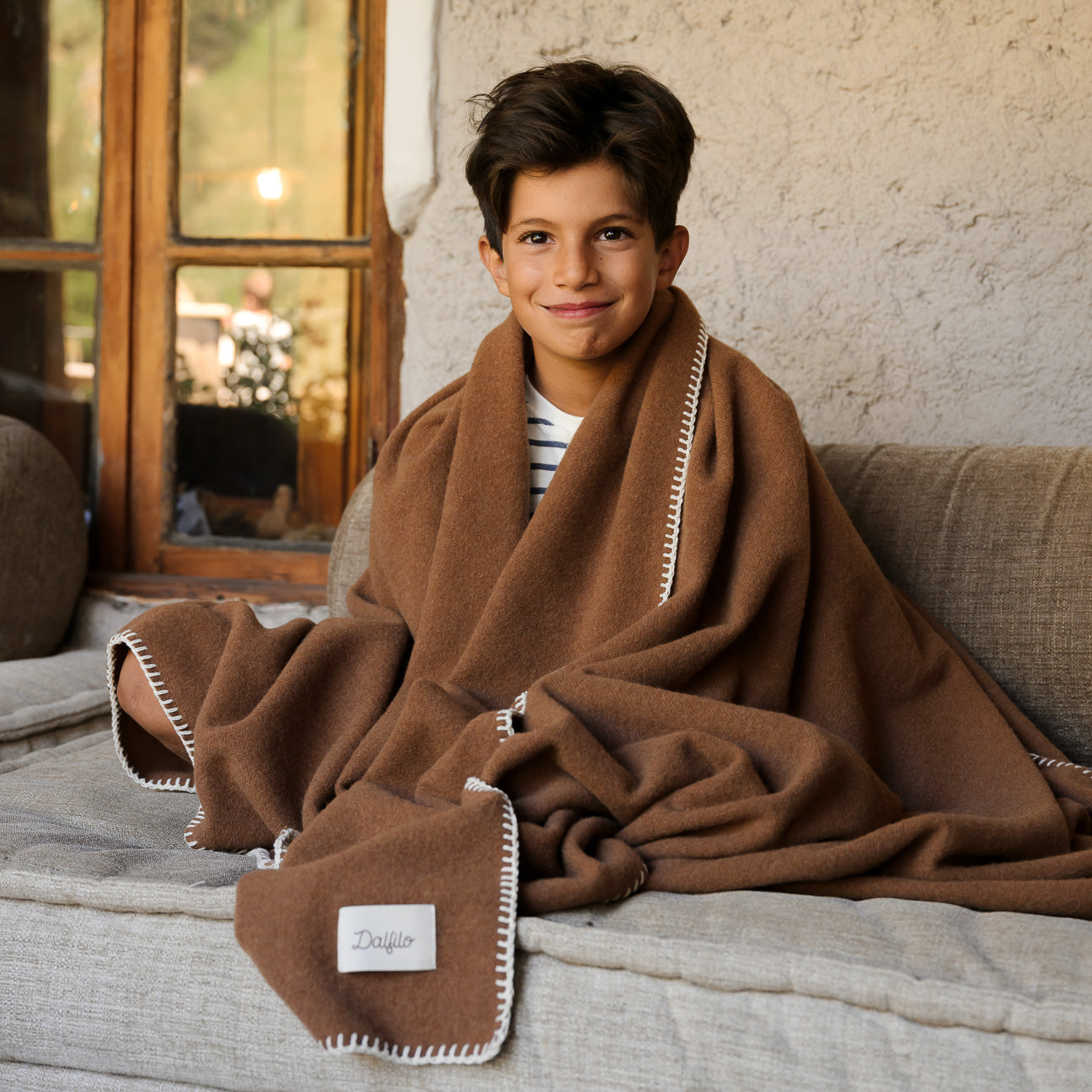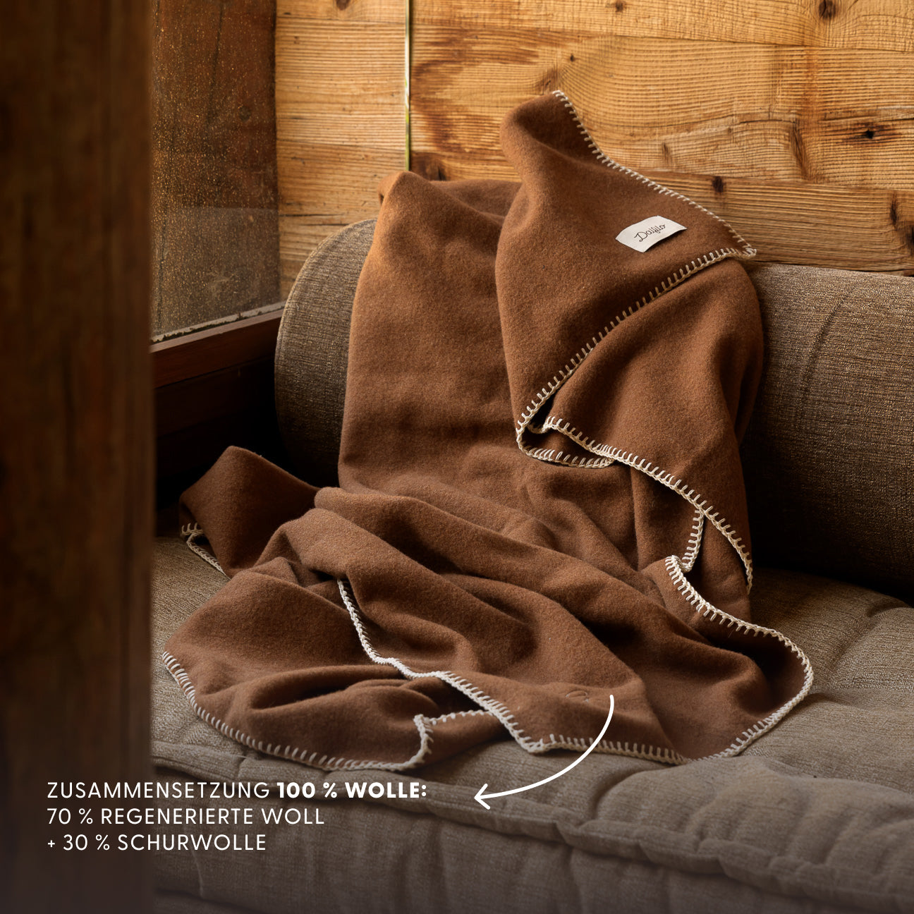 Wolle und Kaschmir sind natürliche Garne mit unglaublichen Eigenschaften: Sie isolieren, wärmen, fühlen sich weich an und sind vor allem ewig haltbar. Unsere Decken werden aus regenerierten Fasern hergestellt, die durch ein sorgfältiges Verfahren zur Aufarbeitung von recycelten Stoffen gewonnen werden, denen wir einen Anteil an Frischfasern hinzufügen. Das Ergebnis ist ein sehr weiches, anschmiegsames und langlebiges Garn mit geringer Umweltbelastung... Eine Kuscheldecke für uns und unseren Planeten.