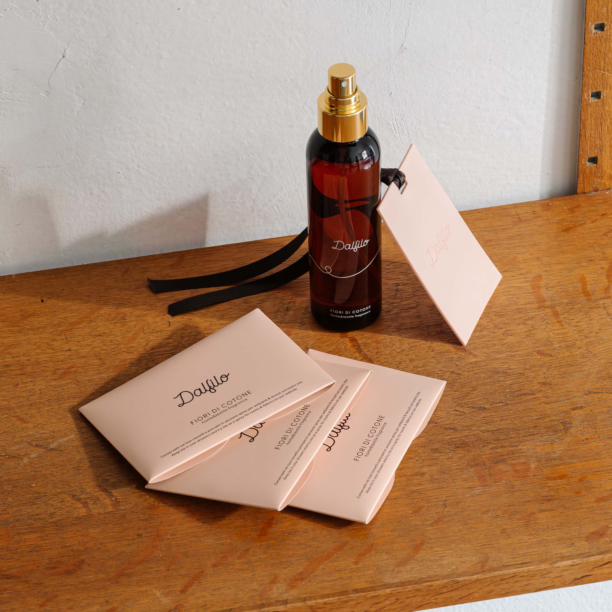 Dalfilo interpretiert das Ritual des Raumdufts neu – mit der Kollektion Duft-Accessoires: Diffusoren, Kerzen, Textilsprays sowie Duftprodukte für Schubladen und Wäsche.