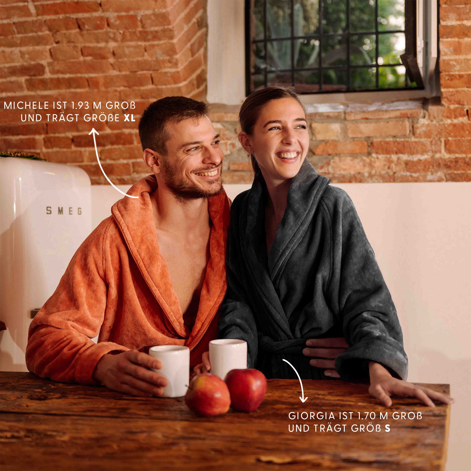 Der Superior Frottierstoff von Dalfilo besteht aus 450 gr/m² reinem, gekämmtem Baumwollstoff auf der Außenseite. Mit seinem samtigen, eleganten Aussehen und unvergleichlicher Weichheit bietet dieser Frottierstoff das ideale Komforterlebnis.