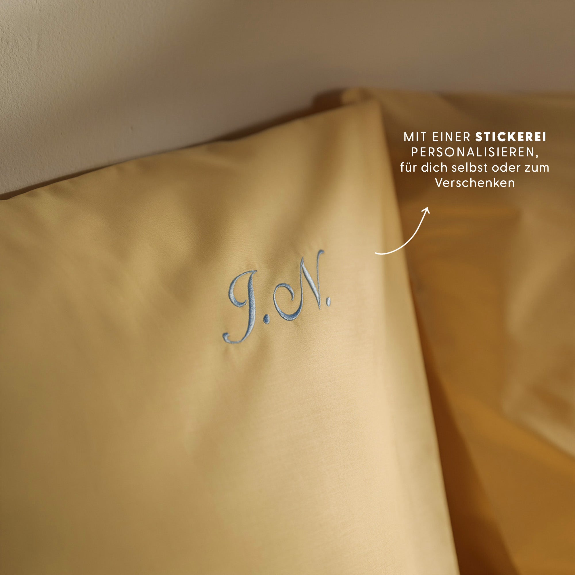 Verleihe Deiner Bettwäsche eine persönliche Note mit Deinen Initialen in der Garnfarbe und Schriftart Deiner Wahl. Unsere maßgeschneiderte Personalisierungsoption ermöglicht es Dir, aus einer Vielzahl von Garnfarben und Schriftarten zu wählen, um Deine Bettwäsche einzigartig und stilvoll zu gestalten. Die hochwertige Stickerei, die mit größter Präzision ausgeführt wird, macht Deine Bettwäsche zu einem langlebigen und besonderen Highlight in Deinem Schlafzimmer. Ideal auch als einzigartiges Geschenk für Freunde und Familie.