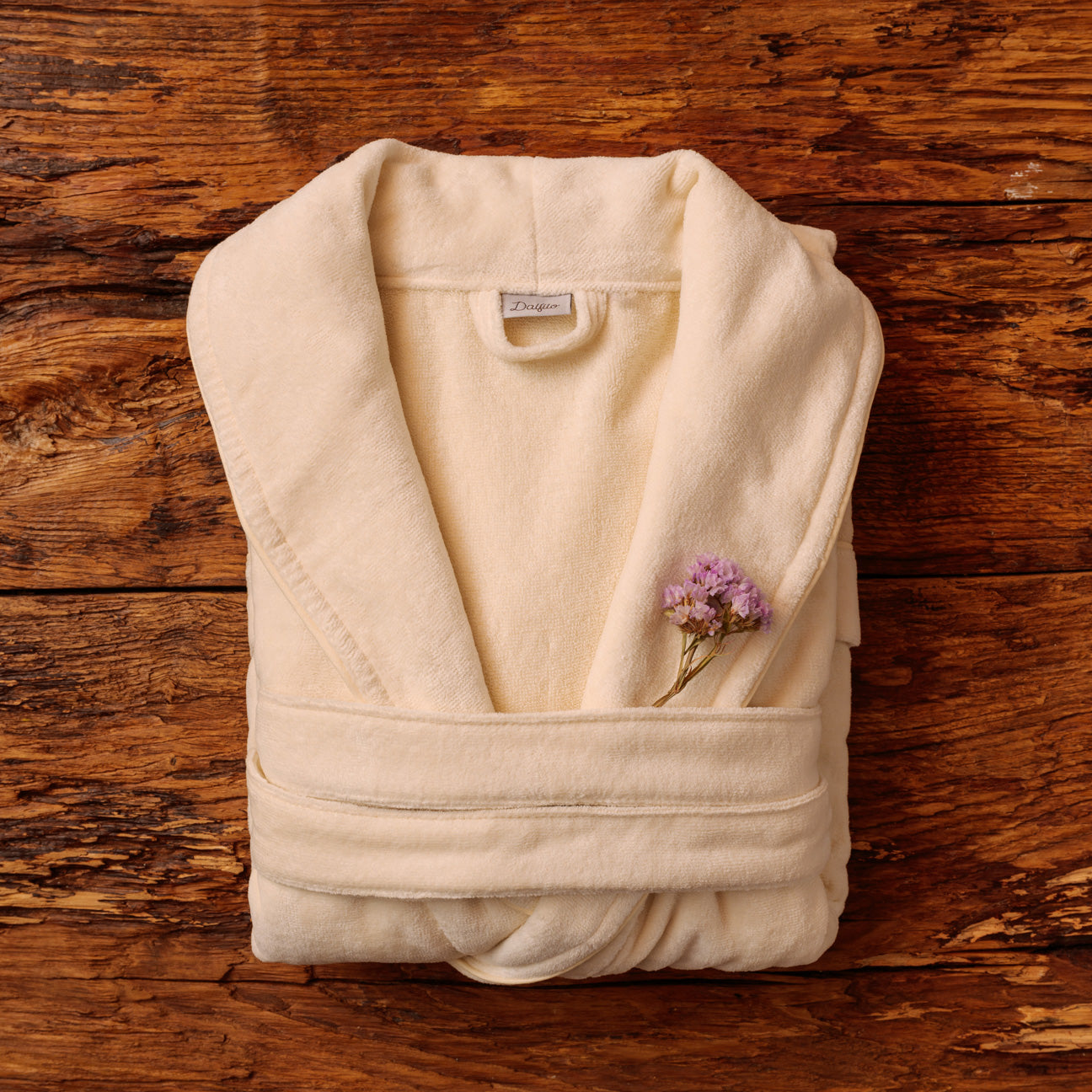 Der Superior Frottierstoff von Dalfilo besteht aus 450 gr/m² reinem, gekämmtem Baumwollstoff auf der Außenseite. Mit seinem samtigen, eleganten Aussehen und unvergleichlicher Weichheit bietet dieser Frottierstoff das ideale Komforterlebnis.