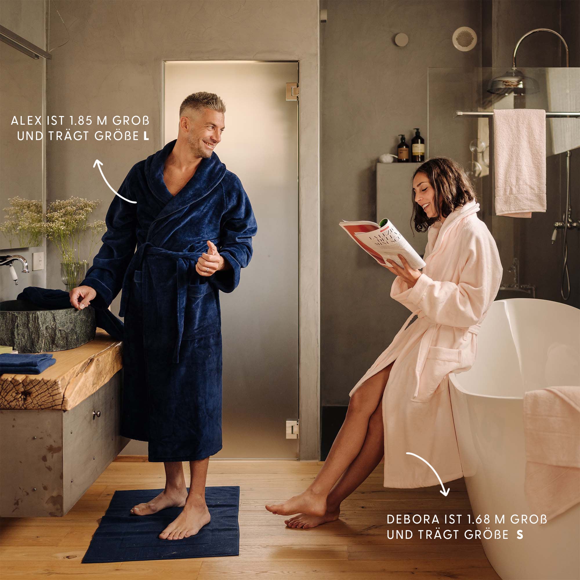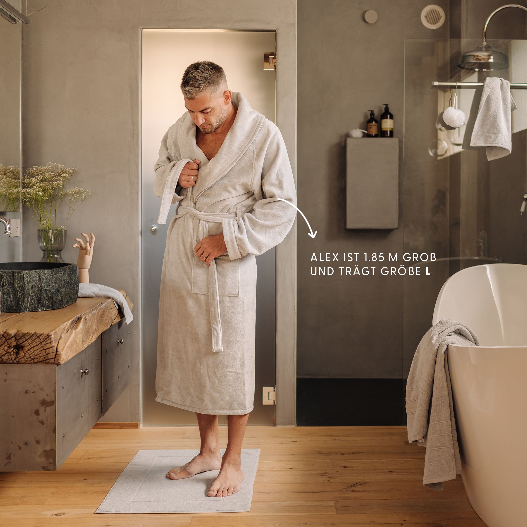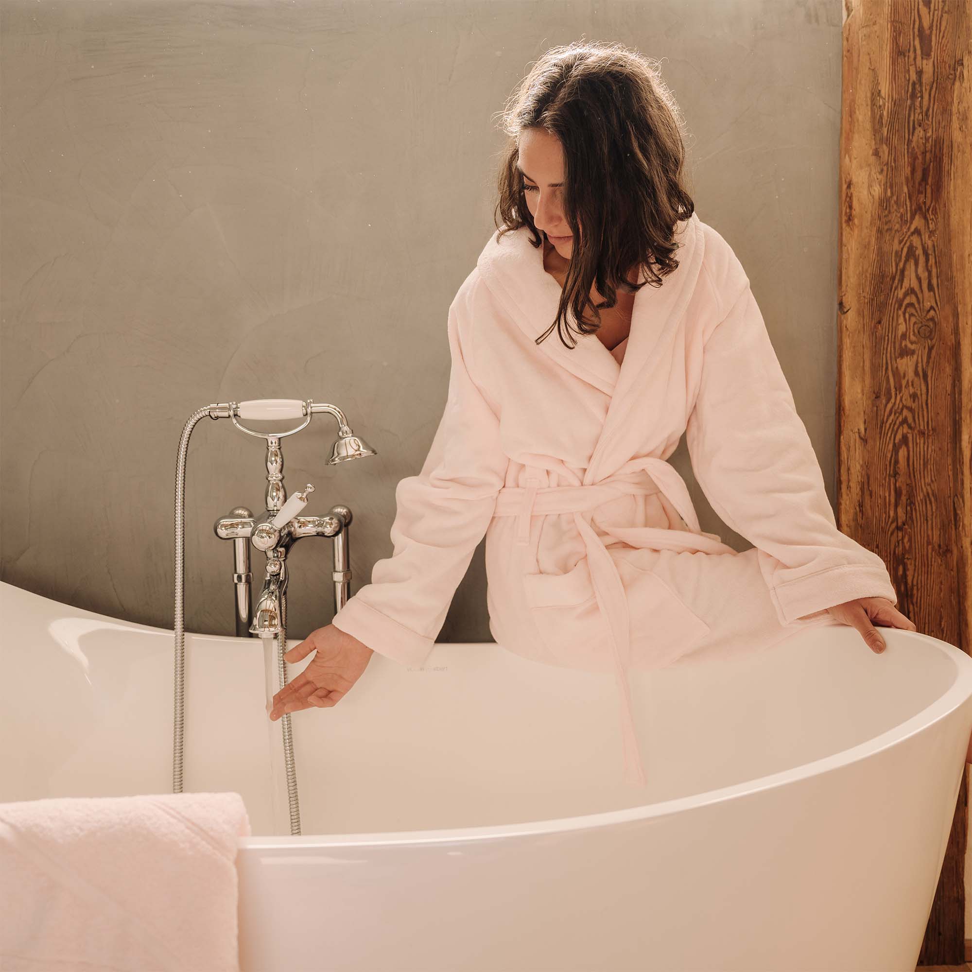 Der Superior Frottierstoff von Dalfilo besteht aus 450 gr/m² reinem, gekämmtem Baumwollstoff auf der Außenseite. Elegantes Aussehen und unvergleichliche Weichheit für das ideale Komforterlebnis.