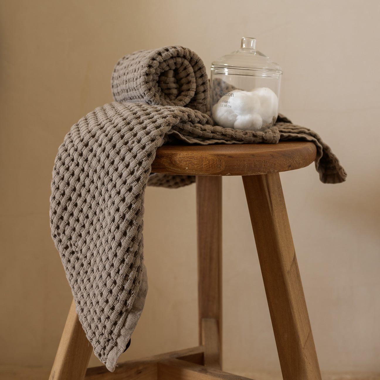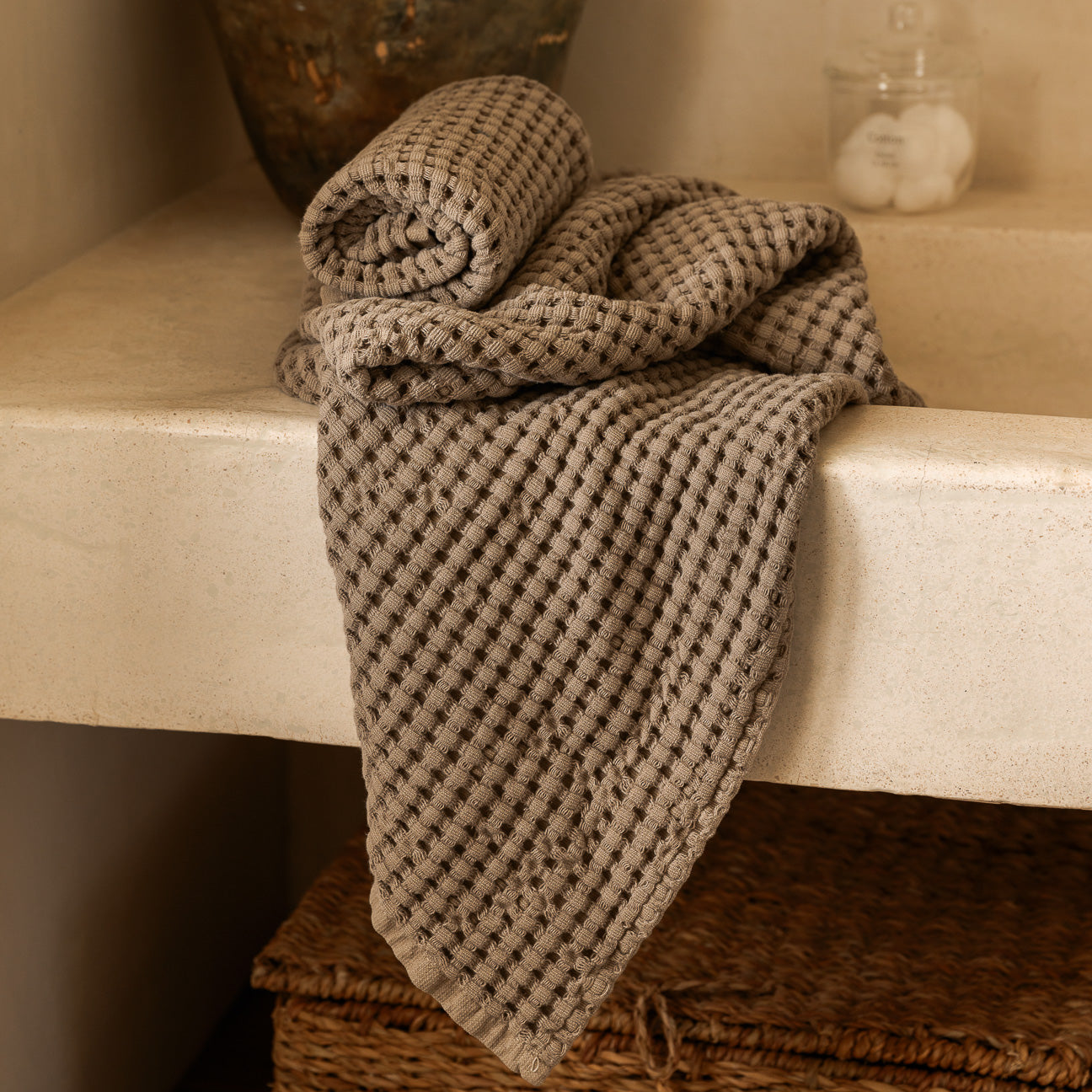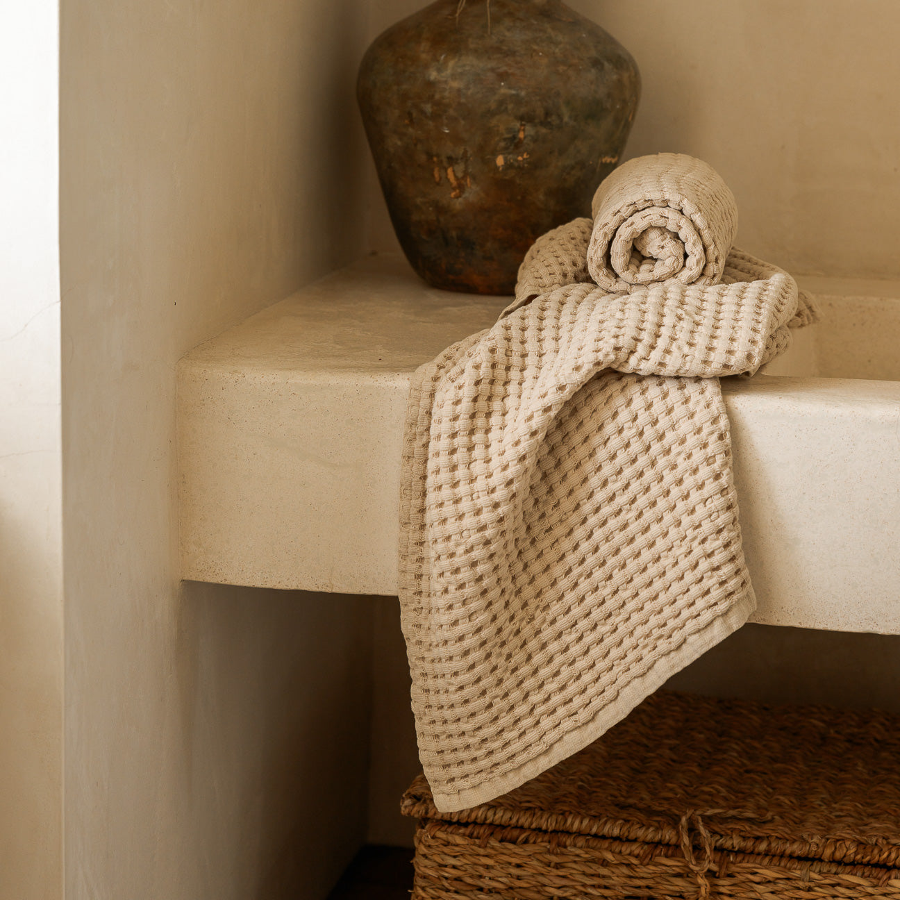 Tauche ein in ein Meer von Stil und Luxus mit unserer auserlesenen Waffelpiqué Stonewashed-Linie. Die Handtücher und Bademäntel aus feinstem Waffelpiqué-Material aus 100% Baumwolle bieten sanfte Reinigung und schnelles Trocknen, und verwandeln dein Badezimmer in eine Oase der Eleganz und des ultimativen Komforts.