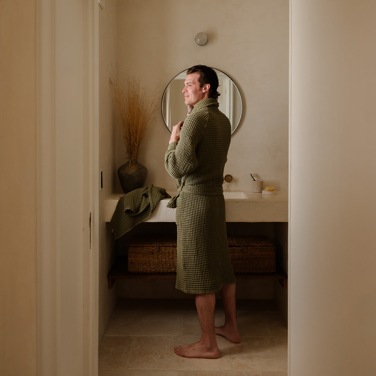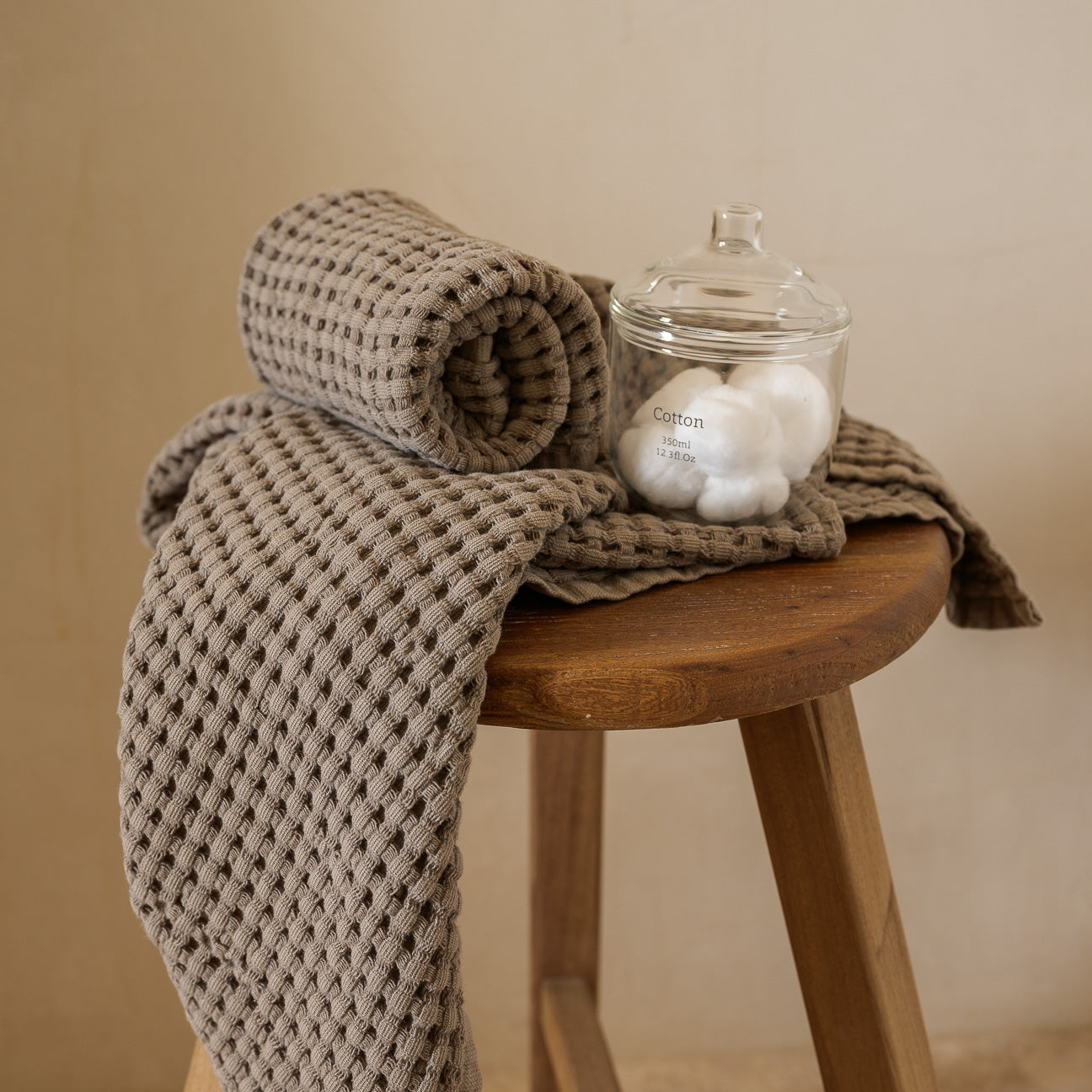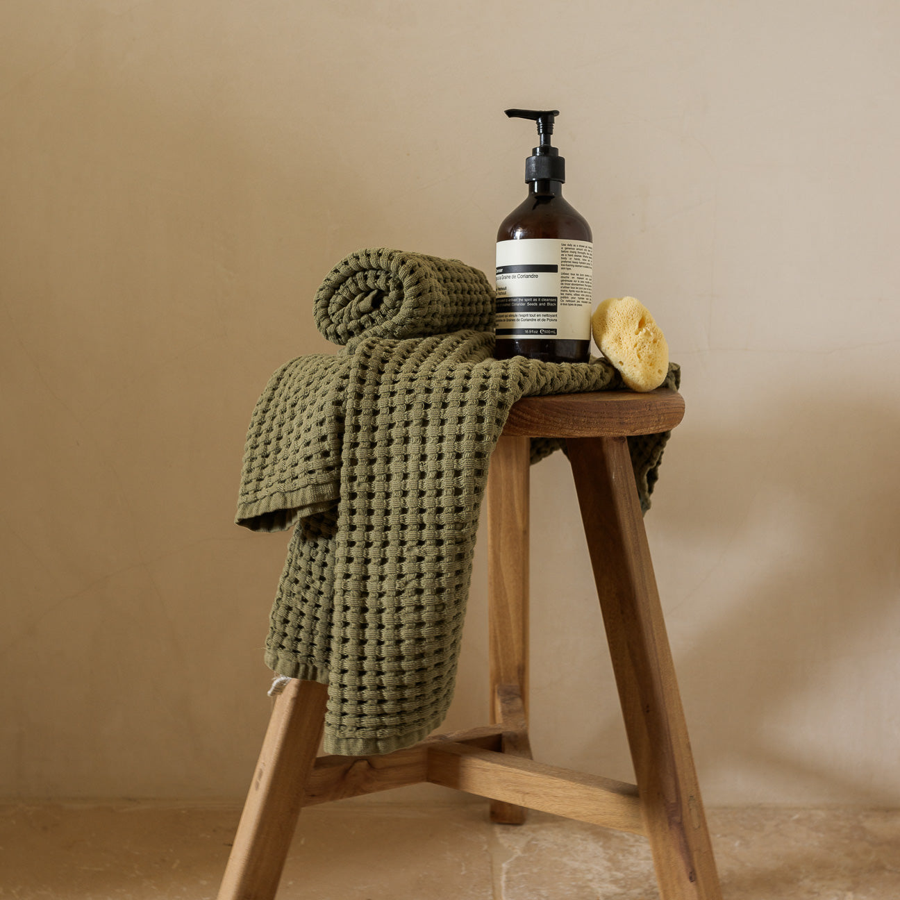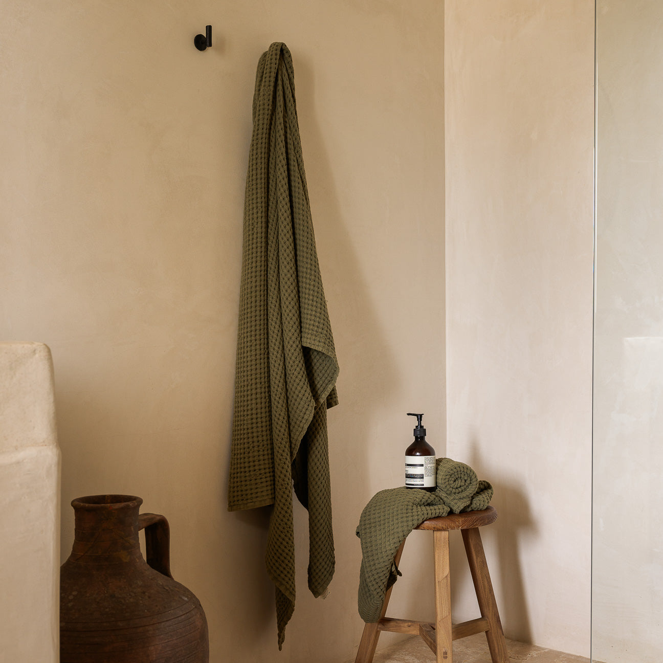 Tauche ein in ein Meer von Stil und Luxus mit unserer auserlesenen Waffelpiqué Stonewashed-Linie. Die Handtücher und Bademäntel aus feinstem Waffelpiqué-Material aus 100% Baumwolle bieten sanfte Reinigung und schnelles Trocknen, und verwandeln dein Badezimmer in eine Oase der Eleganz und des ultimativen Komforts.