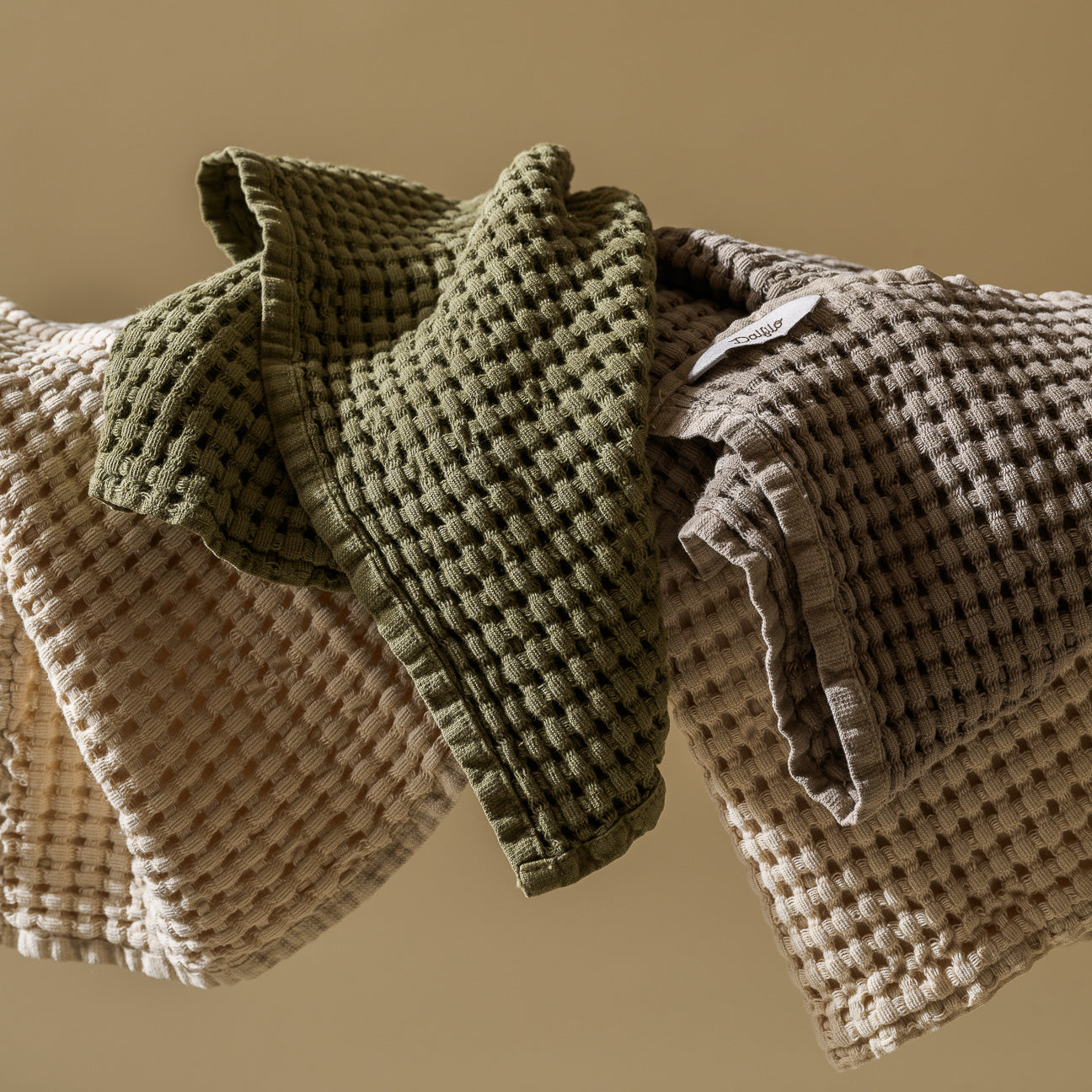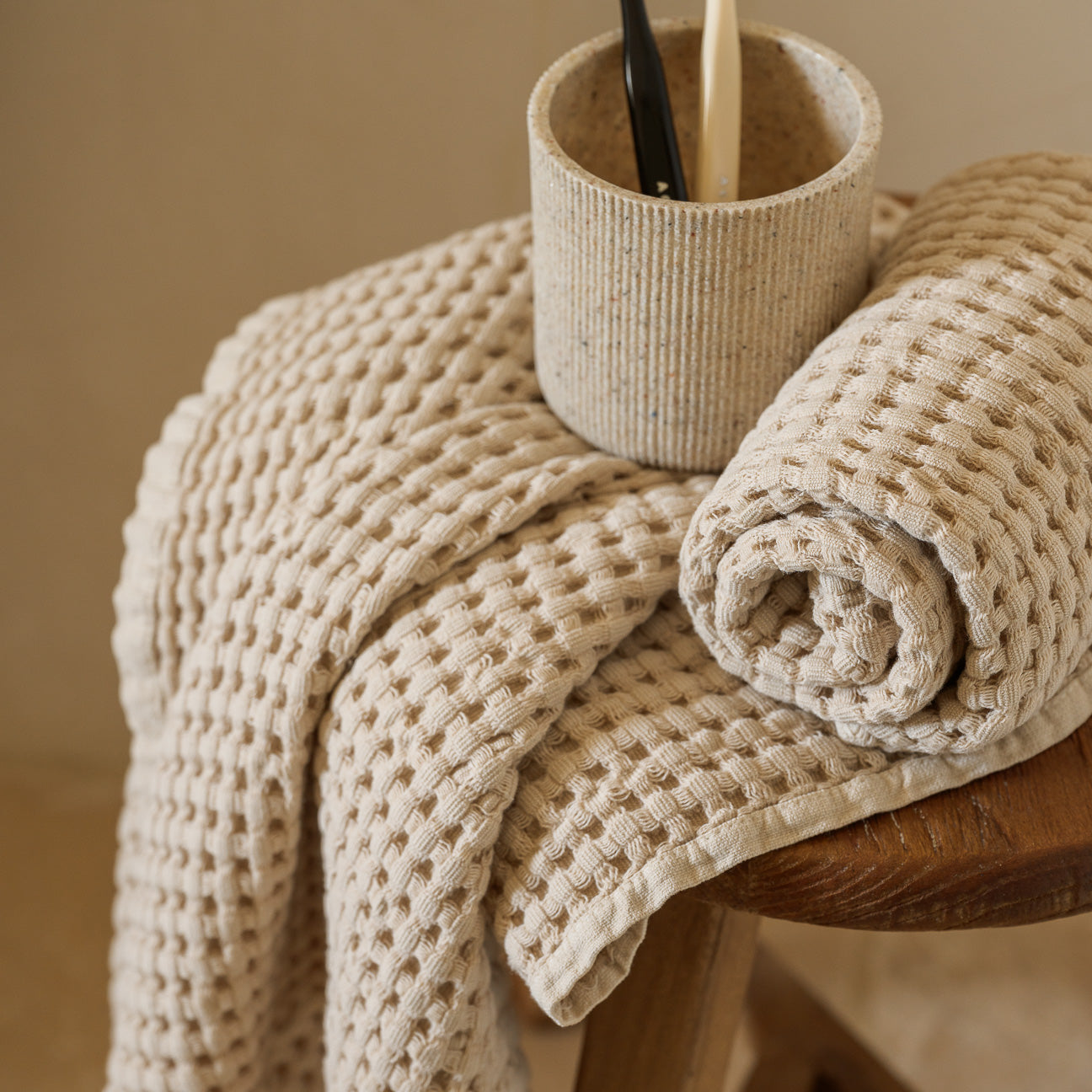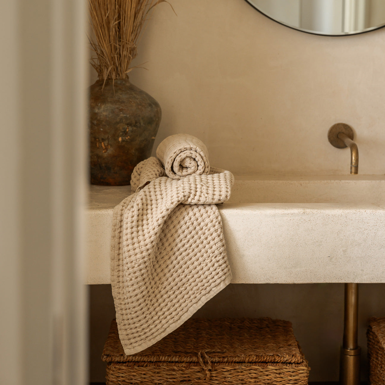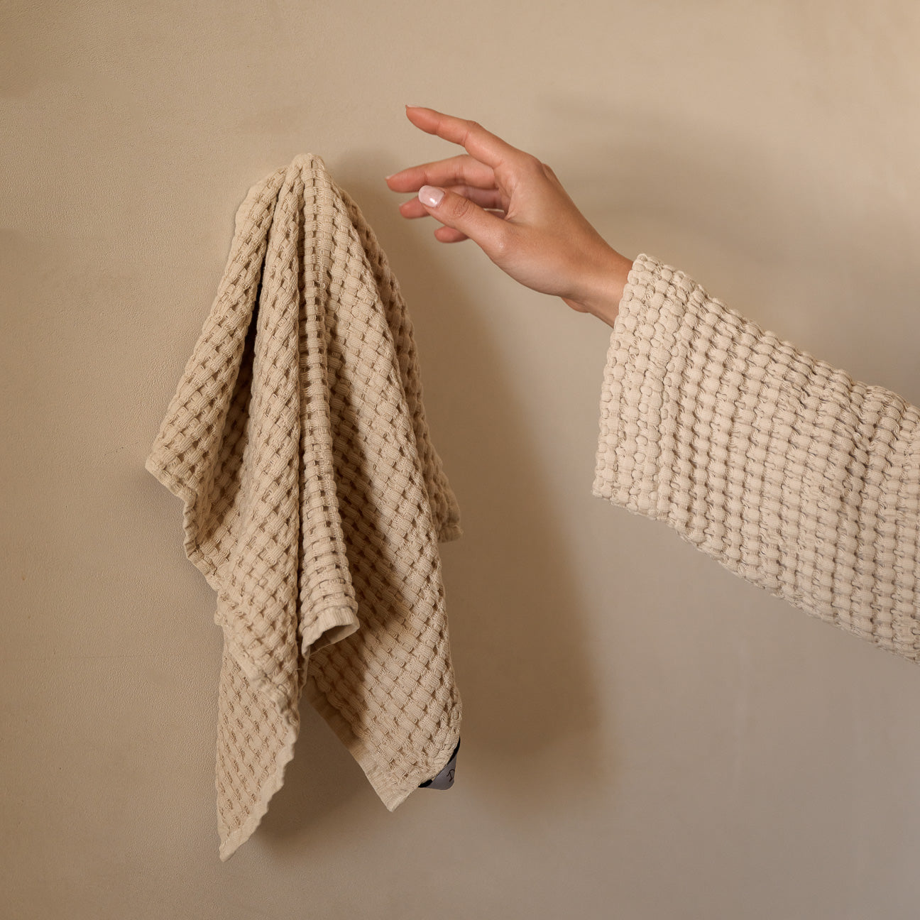 Deshalb haben wir unsere Handwerker*innen gebeten, die Qualitäten unserer Waffelpiqué-Linie mit dem authentischen Charme der Stonewashed-Verarbeitung zu vereinen. Das Ergebnis ist eine robuste, praktische und dennoch raffinierte Textur mit extra Weichheit.