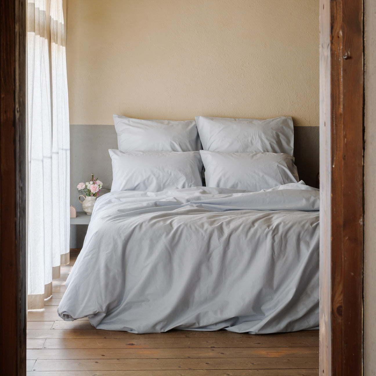 Unser hochwertiger Perkalstoff, mit einer Fadendichte von 200 Fäden pro 2,5 cm² und aus 100% Baumwolle, bietet eine unvergleichliche Kombination aus Weichheit, Langlebigkeit und zeitloser Eleganz. Die dichte Webart verleiht dem Stoff eine glatte, matte Oberfläche, die für ein kühles und angenehmes Schlafgefühl sorgt und gleichzeitig atmungsaktiv ist. Perkalstoff ist extrem strapazierfähig, pflegeleicht und behält auch nach vielen Wäschen seine Form und Qualität. Seine hypoallergenen Eigenschaften machen ihn ideal für empfindliche Haut, während seine umweltfreundliche Herstellung ein nachhaltiges Schlafgefühl garantiert.