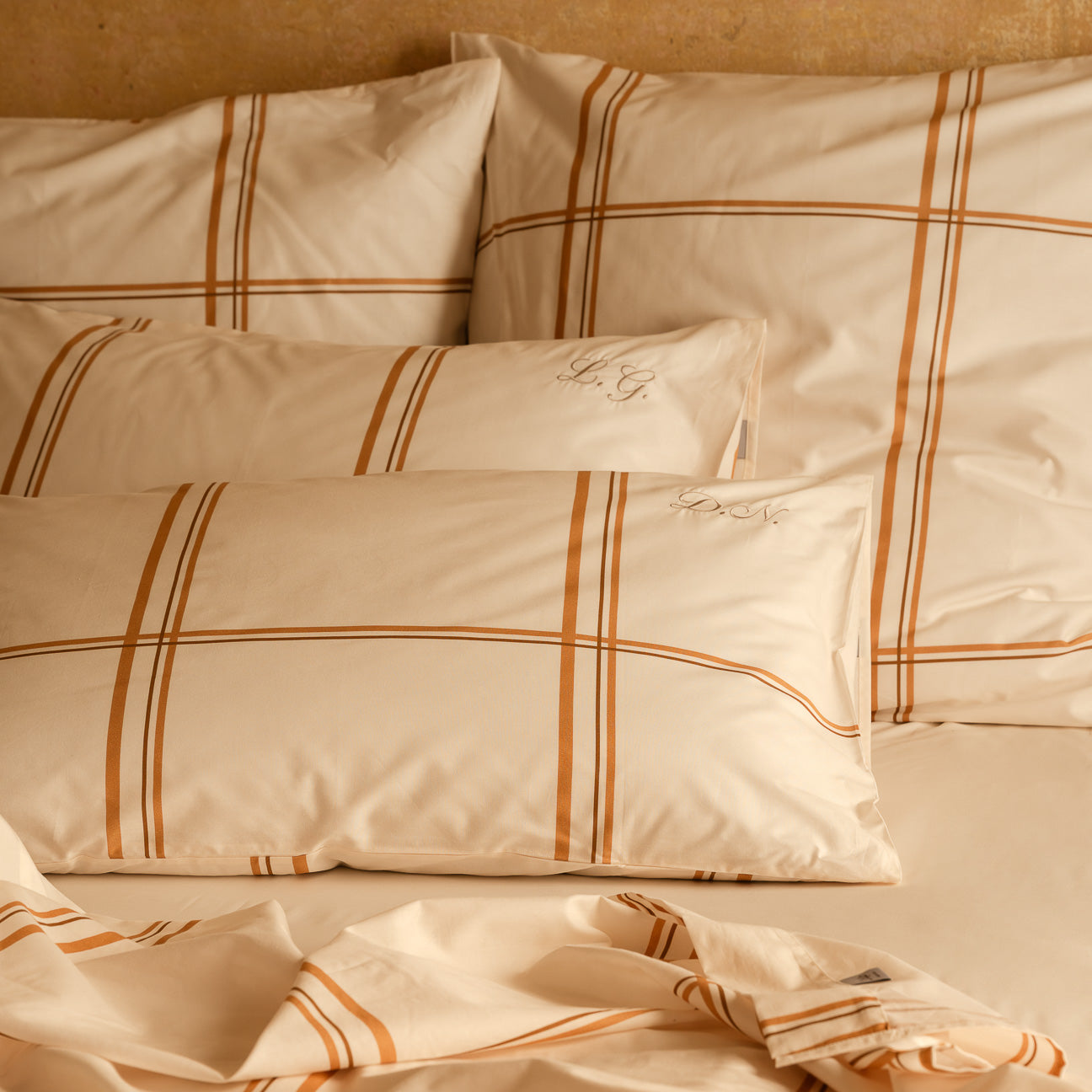 Verleihe Deiner Bettwäsche eine persönliche Note mit Deinen Initialen in der Garnfarbe und Schriftart Deiner Wahl. Unsere maßgeschneiderte Personalisierungsoption ermöglicht es Dir, aus einer Vielzahl von Garnfarben und Schriftarten zu wählen, um Deine Bettwäsche einzigartig und stilvoll zu gestalten. Die hochwertige Stickerei, die mit größter Präzision ausgeführt wird, macht Deine Bettwäsche zu einem langlebigen und besonderen Highlight in Deinem Schlafzimmer. Ideal auch als einzigartiges Geschenk für Freunde und Familie.