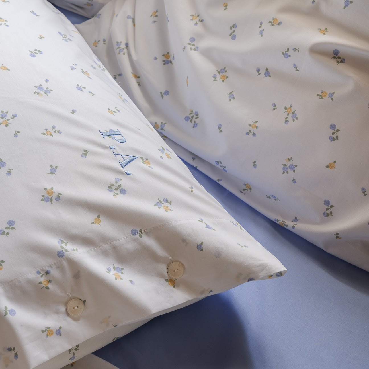 Die Buchstaben werden immer oben rechts gestickt und befinden sich bei Satin Kissenbezüge an der Seite ohne Volant.
