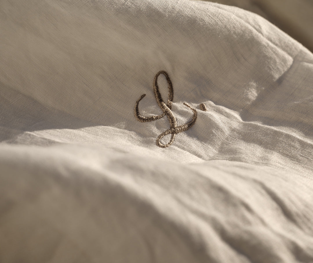 Wie oft hast du davon geträumt, deine Leinen-Bettwäsche zu personalisieren? Mit Dalfilo wird der Traum wahr: Die elegante Schlichtheit von Leinen trifft auf die Schönheit eines einzigartigen Details! Dank unserer Handwerker*innen kannst du deine Initialen und die deiner Liebsten auf deiner Bettwäsche sticken lassen.
