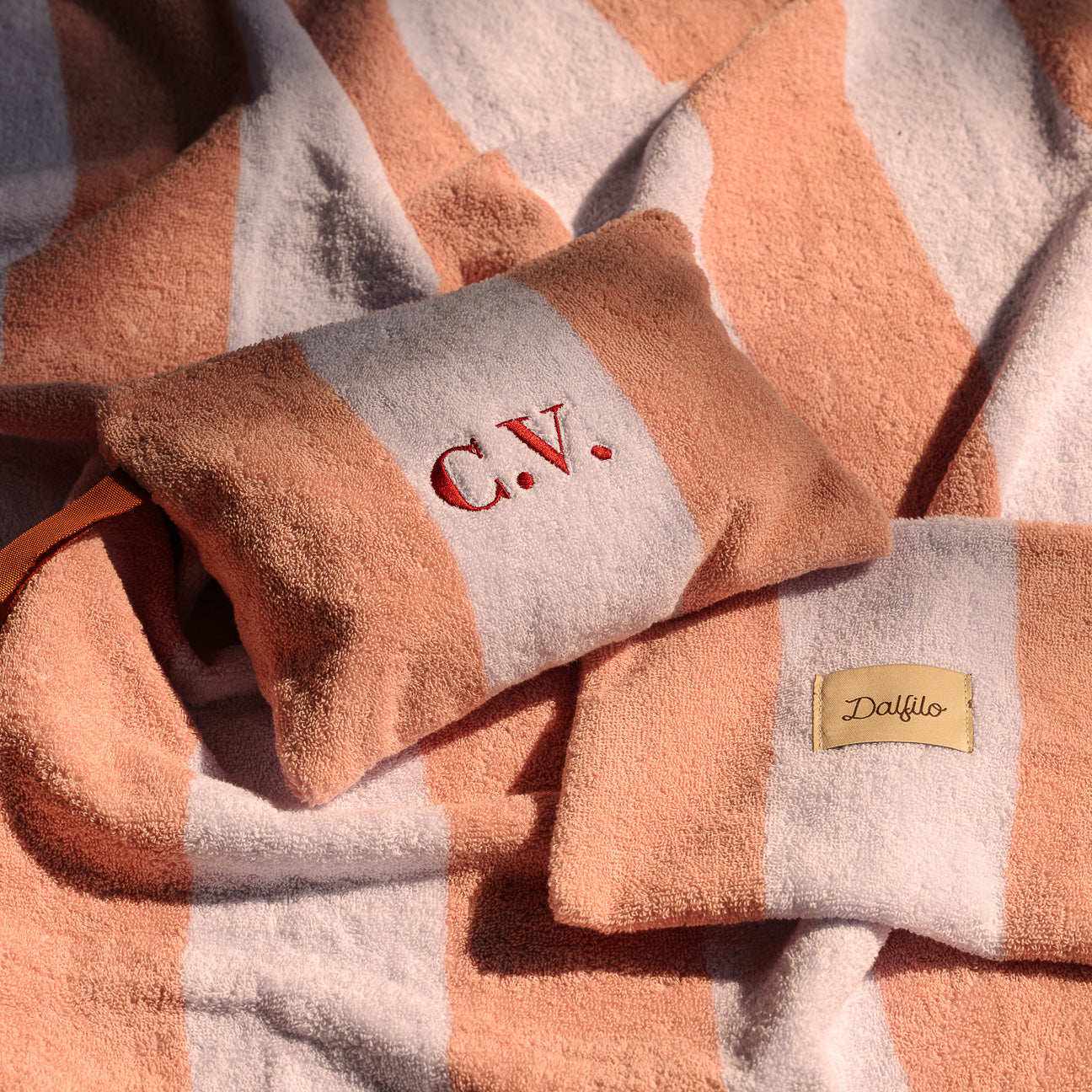 Jedes Teil der Dalfilo-Strandlinie entsteht am Webstuhl – aus dem Zusammenspiel von weißen und farbigen Garnen, garngefärbt mit der IDH-Technik für maximale Beständigkeit gegen Sonne, Chlor, Witterungseinflüsse und häufiges Waschen.