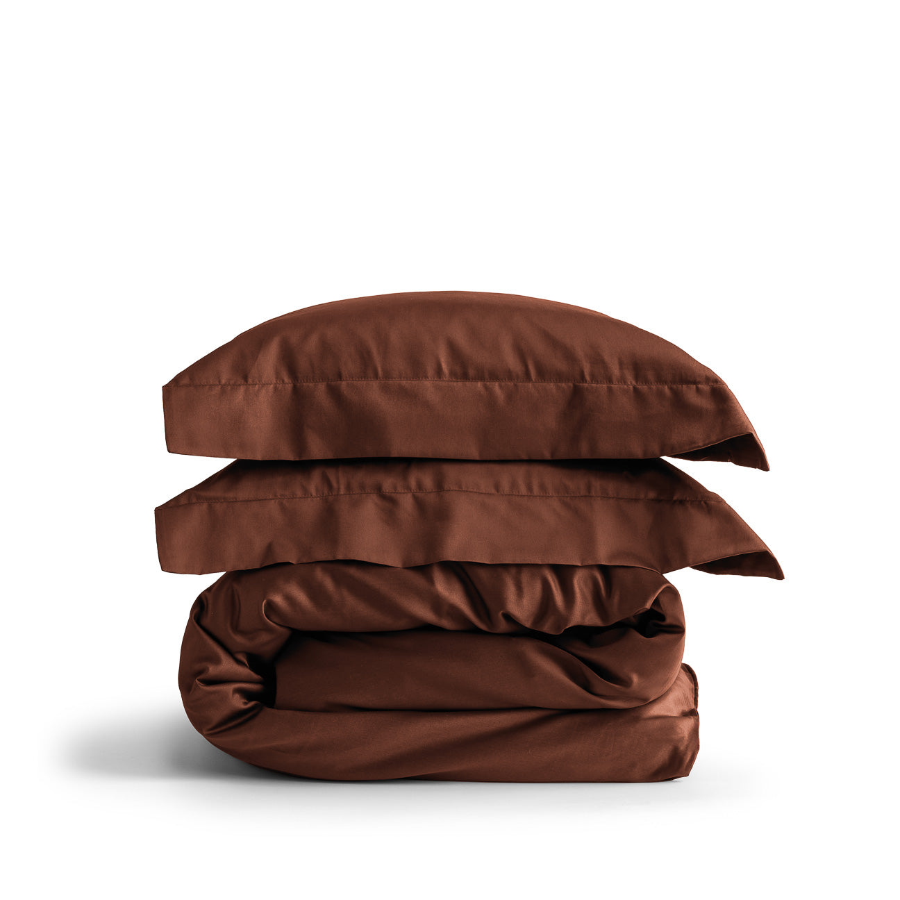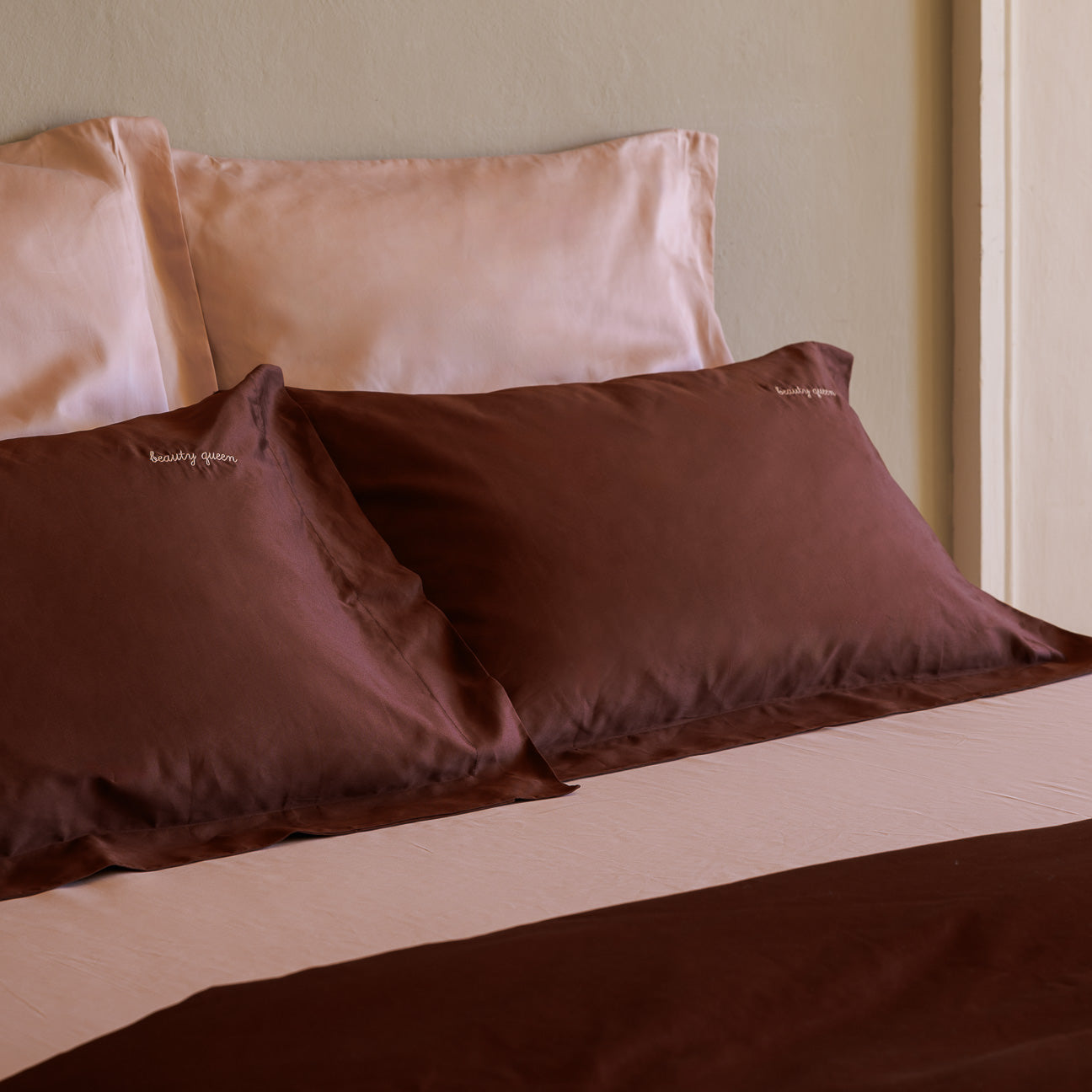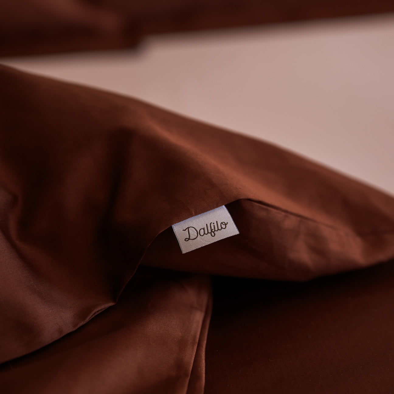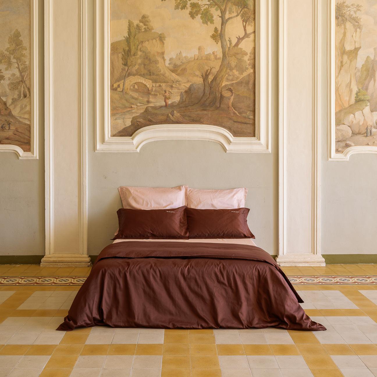 - Enthält: 1 Bettbezug (Mahagoni) + 2er-Set Kissenbezüge (Mahagoni), optional 1 Spannbettlaken (Blassrosa)
