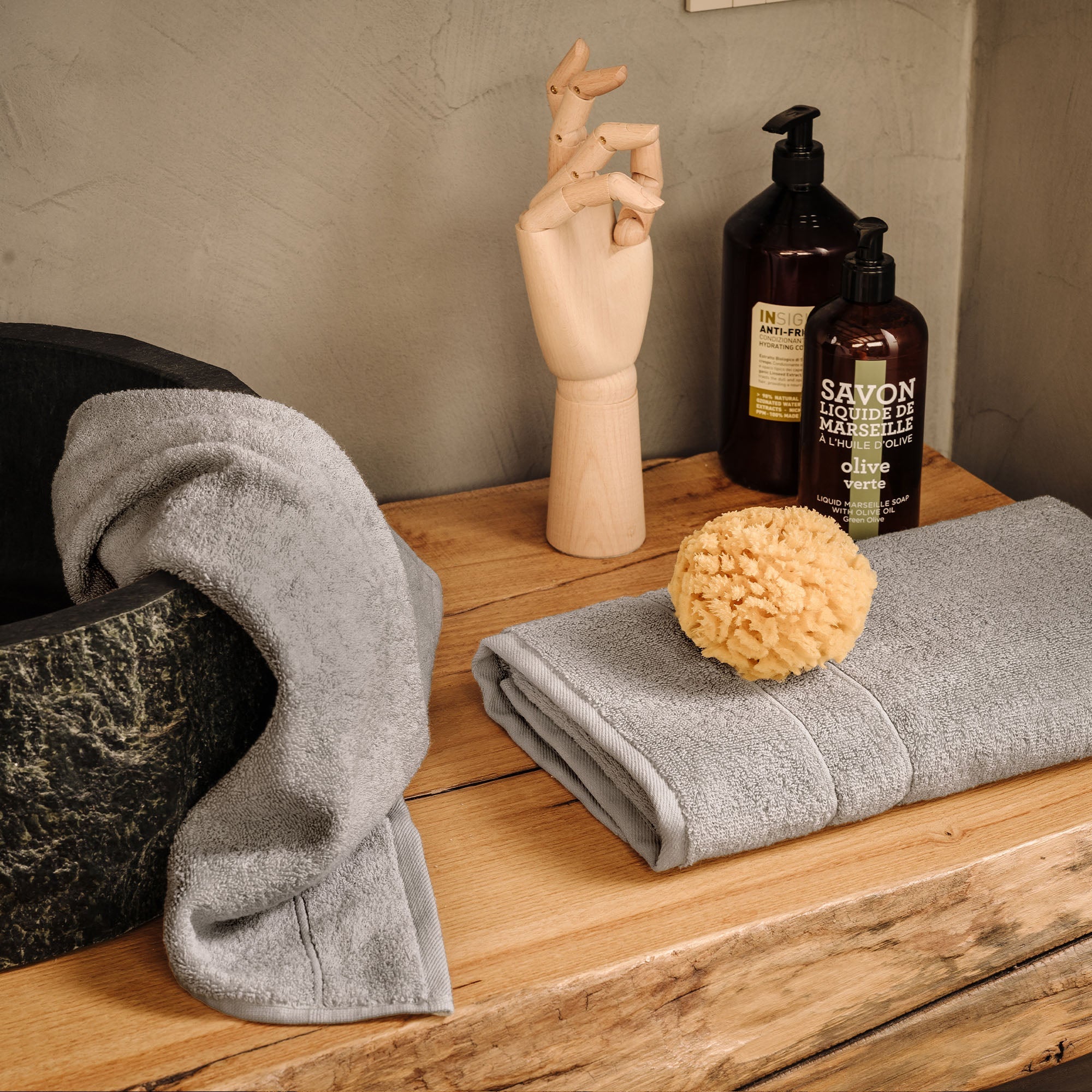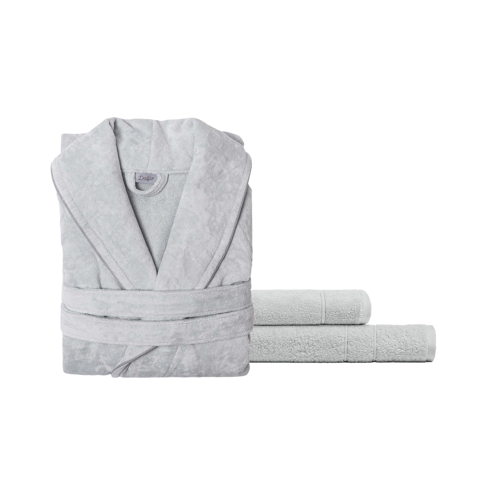 Das Set Dolce Vita besteht aus 1 Gästehandtuch 60x100 cm, 1 Handtuch 40x60 cm und 1 Bademantel Dolce Vita.